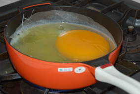 いざ!目玉焼きスタート! もっと平べったく大きいフライパンなら